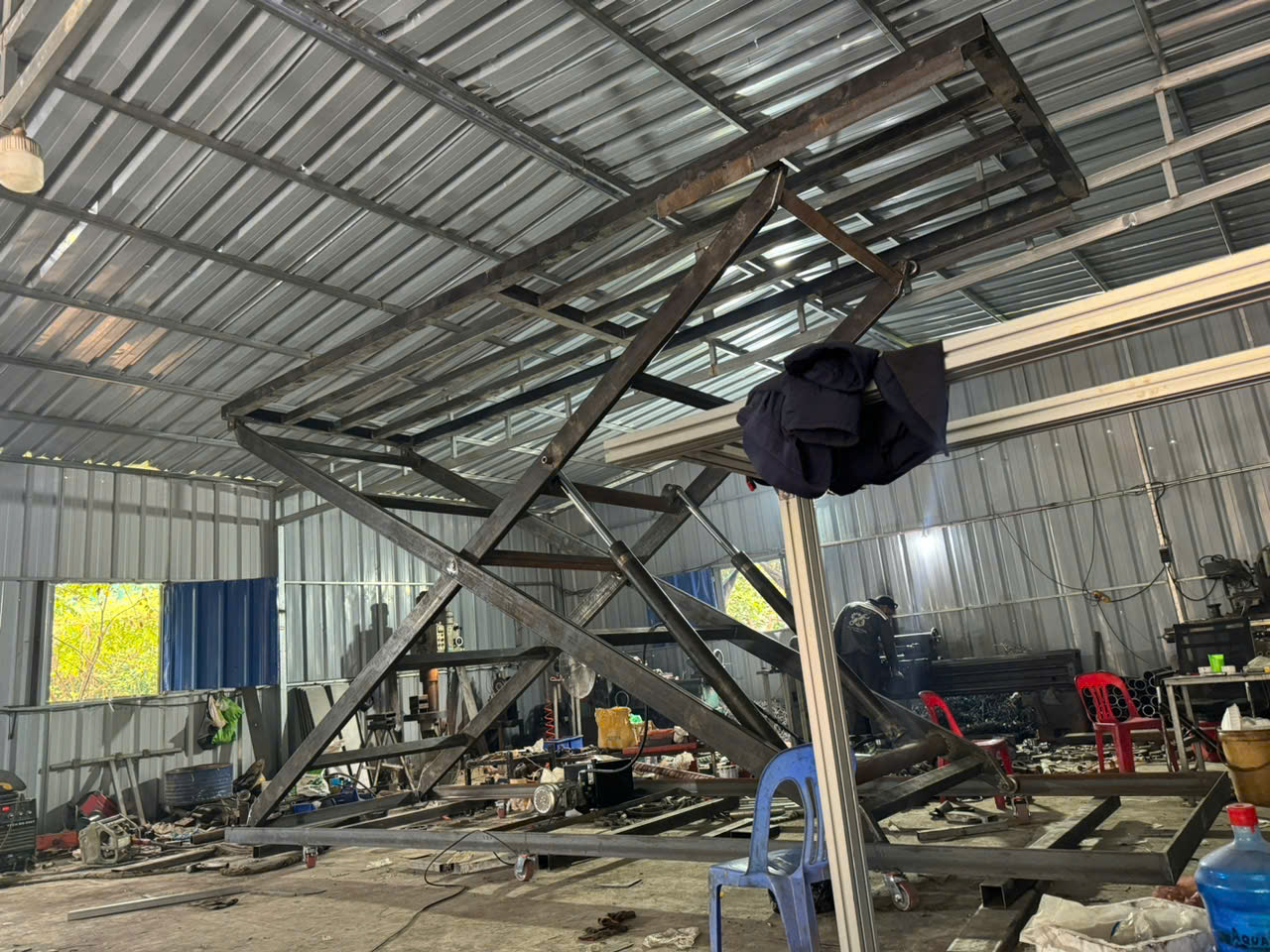 3️⃣ Hệ chữ X mở ra nâng sàn lên